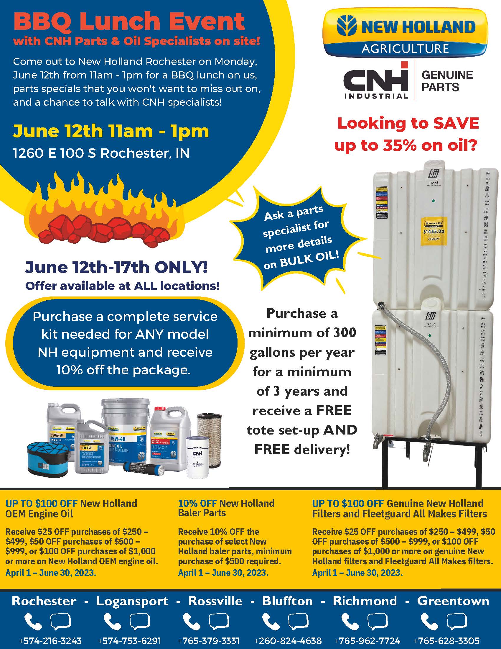 Come out to New Holland Rochester on Monday, June 12th from 11am-1pm for a BBQ lunch on us, parts specials that you won’t want to miss out on, and a chance to talk with CNH Parts and Oil Specialists!