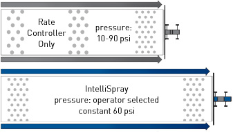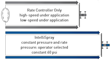 - IntelliSpray automatically and precisely controls the flow to meet targeted application rates