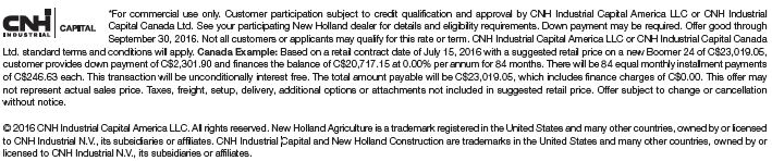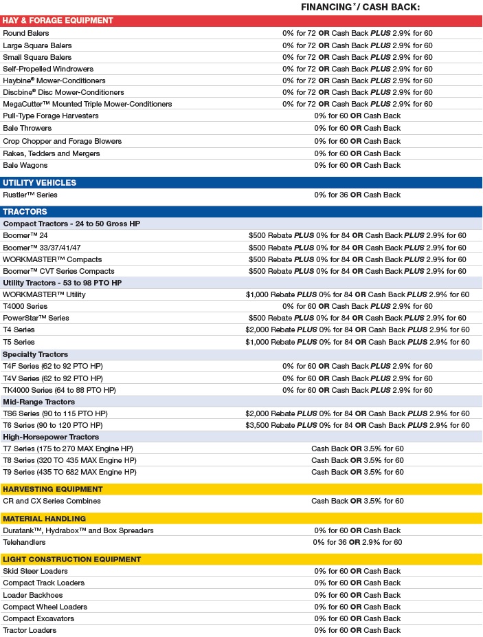 Up to 10% discount plus 180 day no interest on $750 or more new holland parts using your CNH Productivity Plus account!
